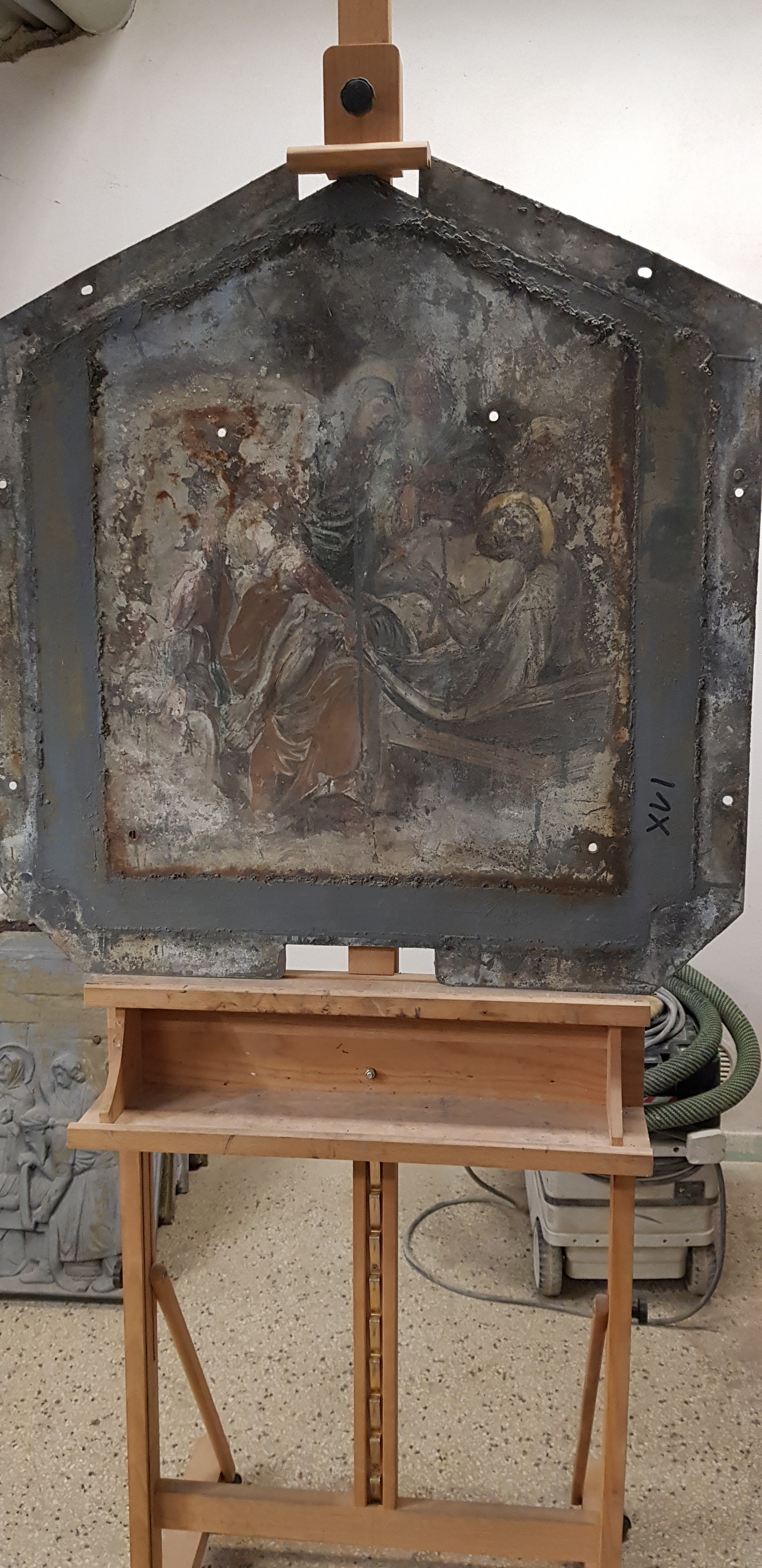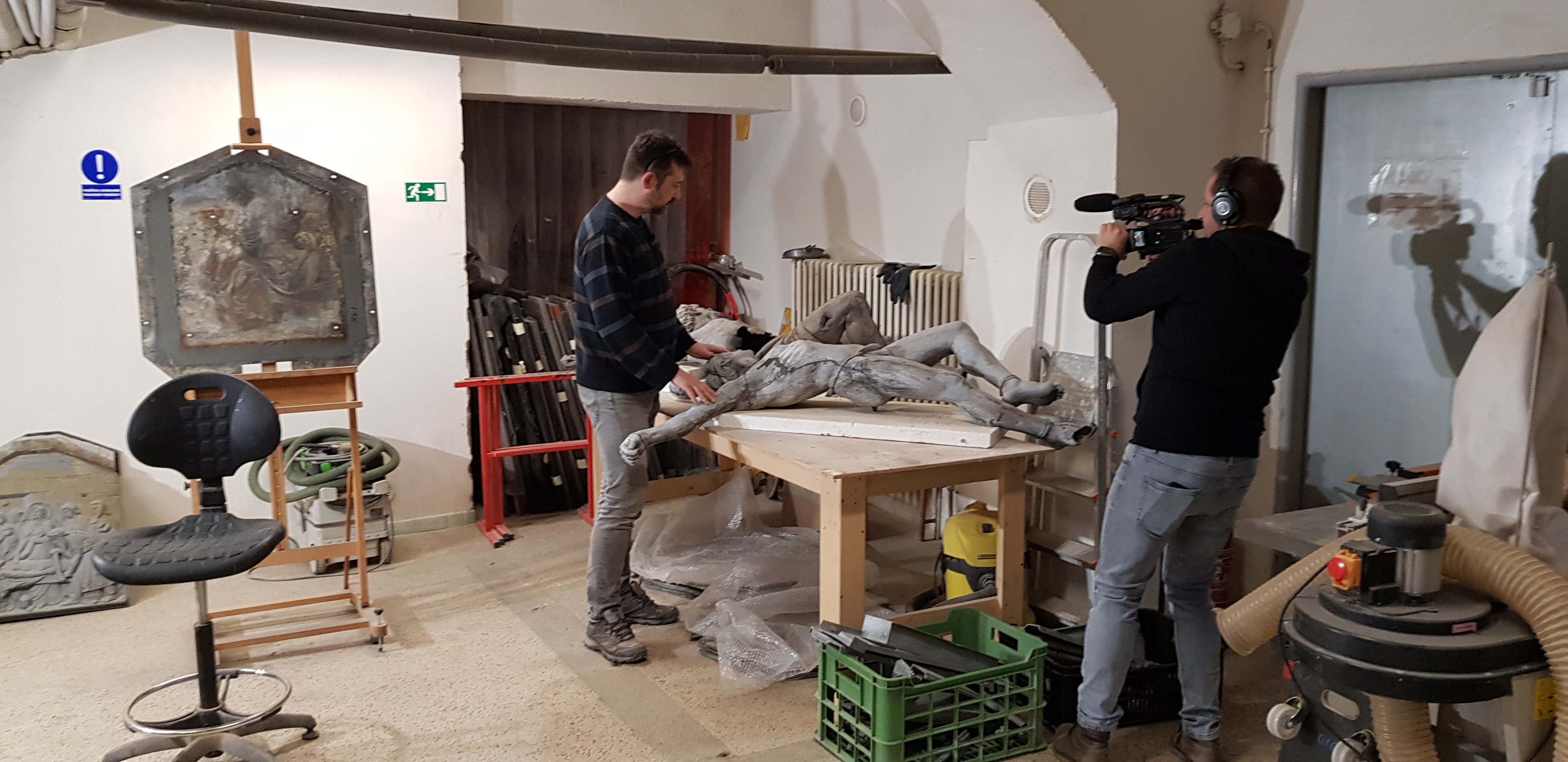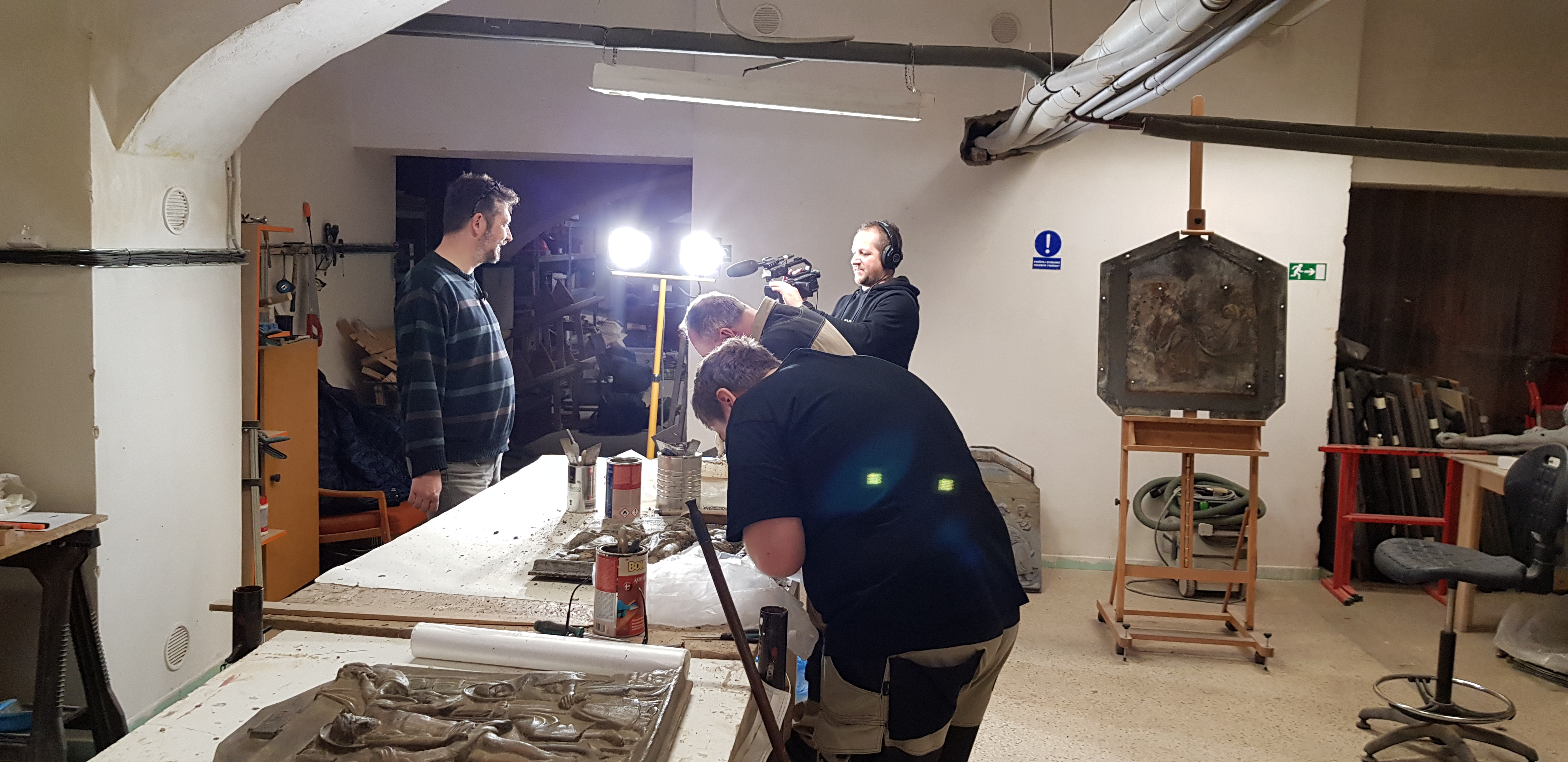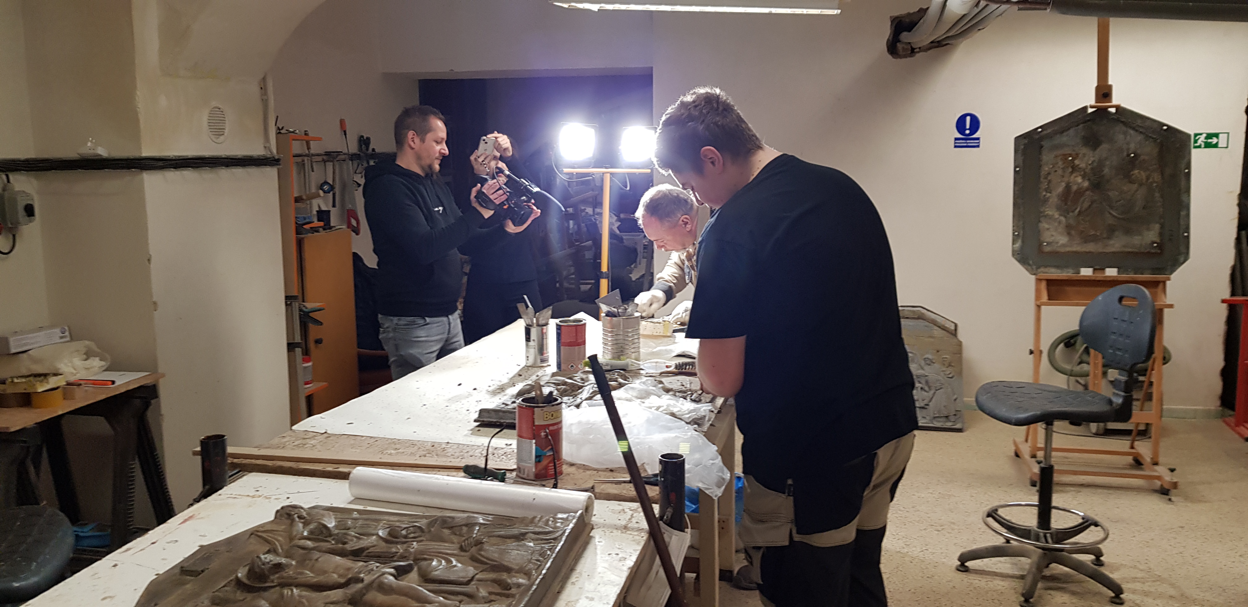 Snímky z přípravy reportáže o restaurování kovových částí kvasické křížové cesty v Brně.